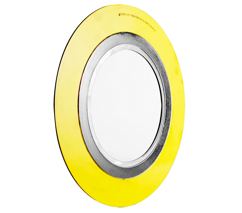 The 913M is the standard spiral wound gasket with an inner ring. The purpose of this ring is to fill out the space between the flanges, avoiding turbulence in the flow of the fluid or as protection against corrosion or erosion. It is also used as a compression limit. Gaskets with PTFE filler have a tendency to inward buckle thus the use of an inner ring is required by ASME B16.20.
