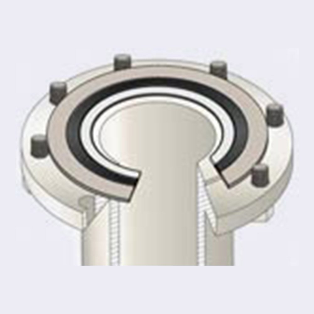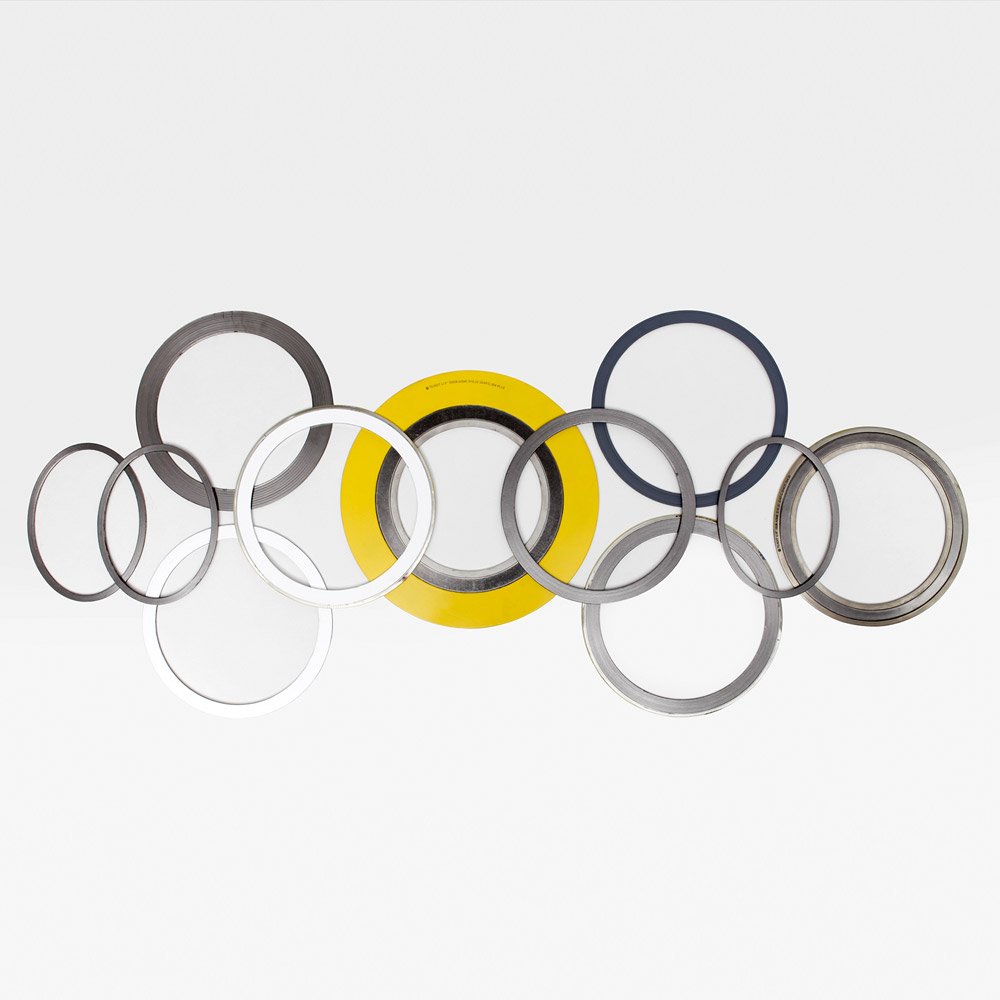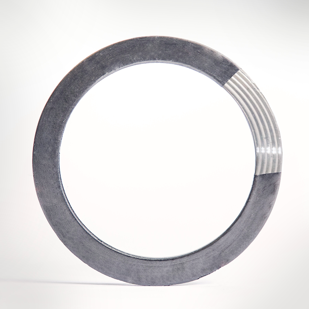 A Jacketed Gasket is comprised of a soft pliable core inside a metallic jacket. Metallic Jacket Almost any metal or alloy found in sheet form can be used as a jacket; its choice must take into consideration the fluid to be sealed. The metallic jacket is 0.016 in (0.4mm) to 0.020 in (0.5mm) thick. Design The following recommendations are based on successful practical applications: Gaskets confined by the inside and outside diameters: Gasket inside diameter = groove inside diameter plus 1/16 in (1.6 mm). Gasket outside diameter = groove outside diameter less 1/16 in (1.6 mm). Gaskets confined by outside diameter: Gasket inside diameter = flange inside diameter plus a minimum of 1/8 in (3.2 mm). Gasket outside diameter = groove outside diameter less 1/16 in (1.6 mm). Non-confined gaskets: Gasket inside diameter = flange inside diameter pIus 1/8 in (3.2 mm). Gasket outside diameter = bolt circle diameter less bolt diameter. Filler The standard filler material is Flexible Graphite. Other fillers like ceramic, PTFE or another metal (corrugated, flat, or serrated) can be used.