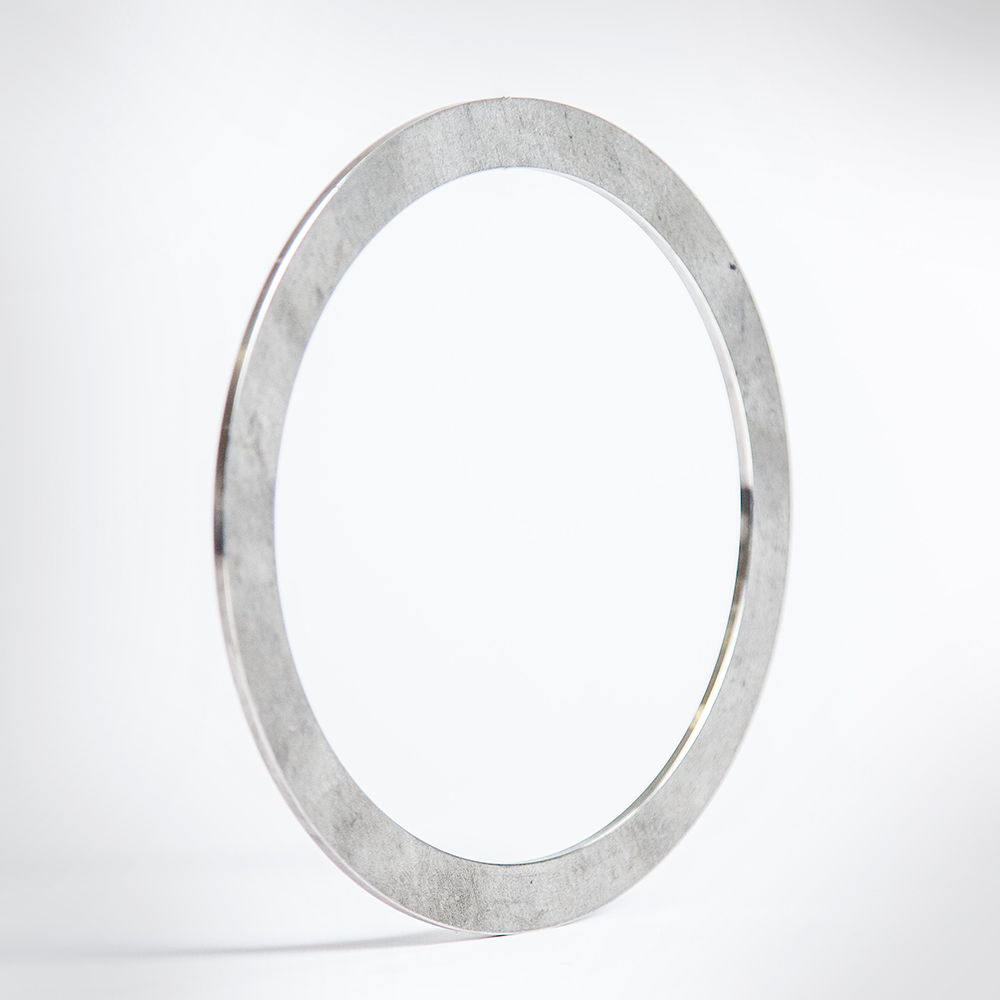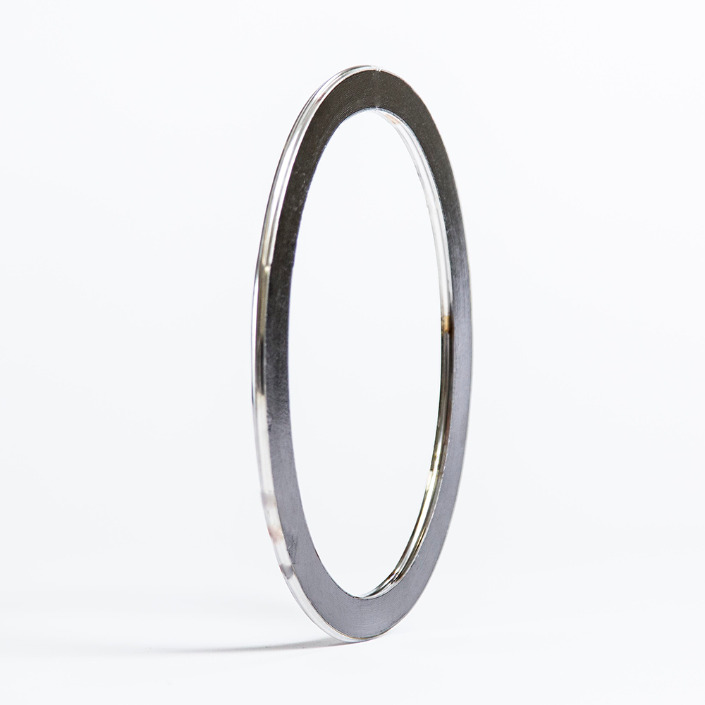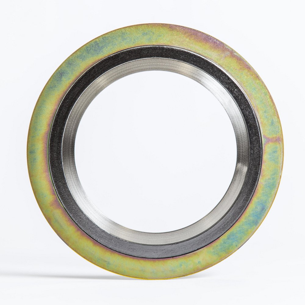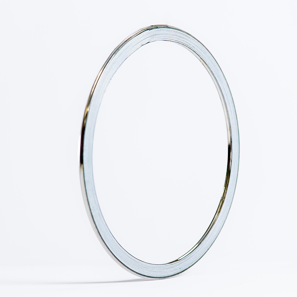 A Jacketed Gasket is comprised of a soft pliable core inside a metallic jacket. Metallic Jacket Almost any metal or alloy found in sheet form can be used as a jacket; its choice must take into consideration the fluid to be sealed. The metallic jacket is 0.016 in (0.4mm) to 0.020 in (0.5mm) thick. Design The following recommendations are based on successful practical applications: Gaskets confined by the inside and outside diameters: Gasket inside diameter = groove inside diameter plus 1/16 in (1.6 mm). Gasket outside diameter = groove outside diameter less 1/16 in (1.6 mm). Gaskets confined by outside diameter: Gasket inside diameter = flange inside diameter plus a minimum of 1/8 in (3.2 mm). Gasket outside diameter = groove outside diameter less 1/16 in (1.6 mm). Non-confined gaskets: Gasket inside diameter = flange inside diameter pIus 1/8 in (3.2 mm). Gasket outside diameter = bolt circle diameter less bolt diameter. Filler The standard filler material is Flexible Graphite. Other fillers like ceramic, PTFE or another metal (corrugated, flat, or serrated) can be used.